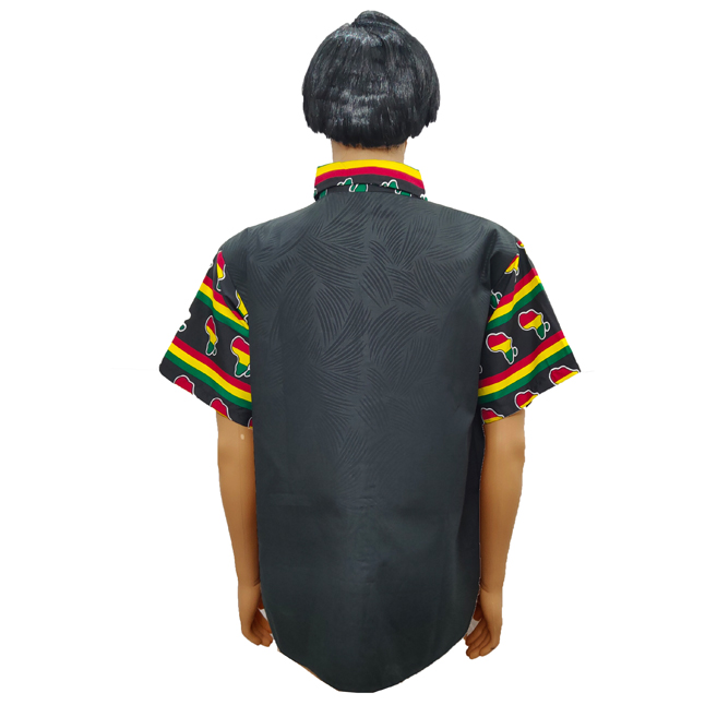 The fabric for this shirt has an African pattern and is plain. The front trimmings, pocket, collar, and sleeves are all made with the African Print.. This Button Down Shirt features a vibrant and vivid pattern on a traditional style.