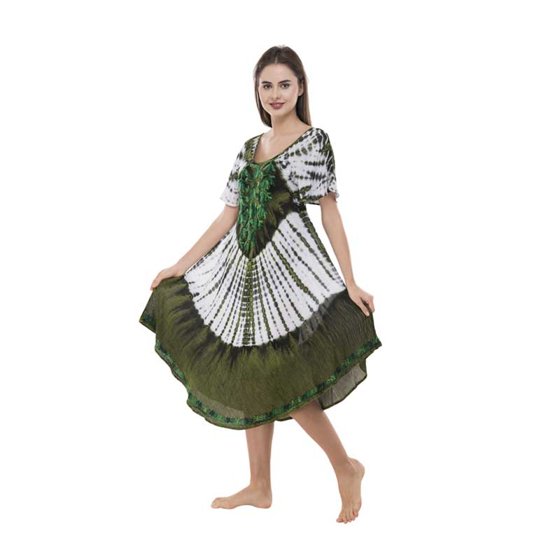 Rayon Tie dye acid wash short sleeve umbrella dress