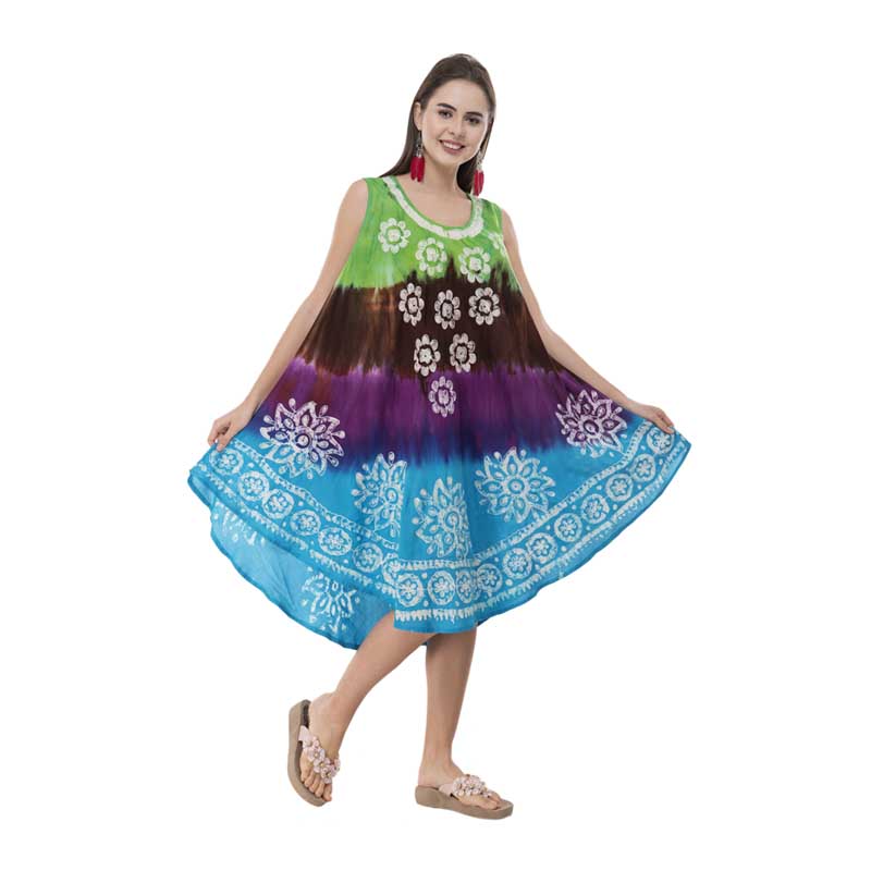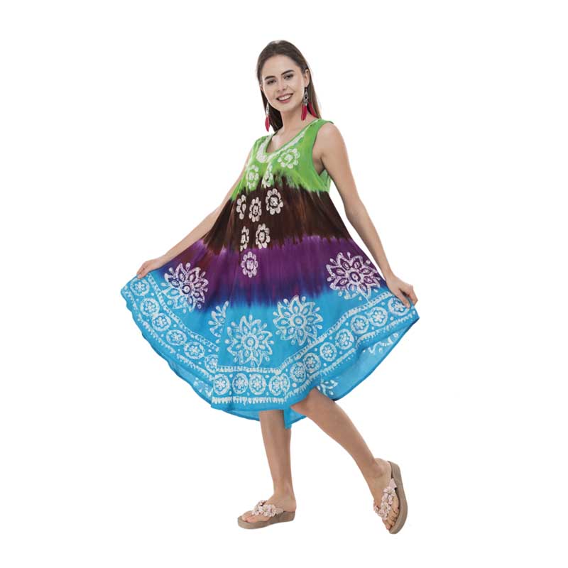 Vibrant Batik Tie Dye Rayon Umbrella Dress
