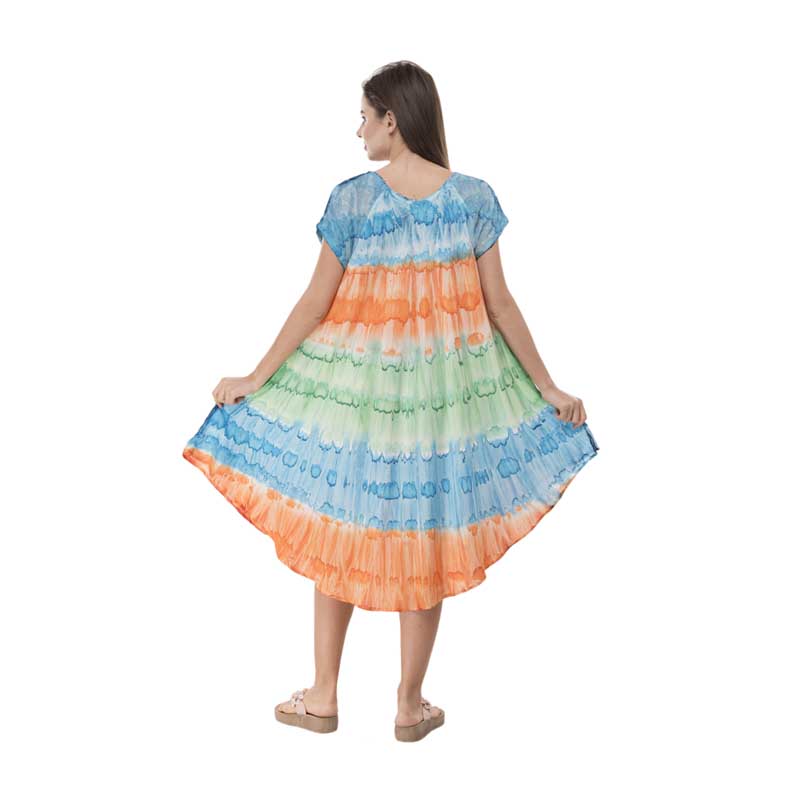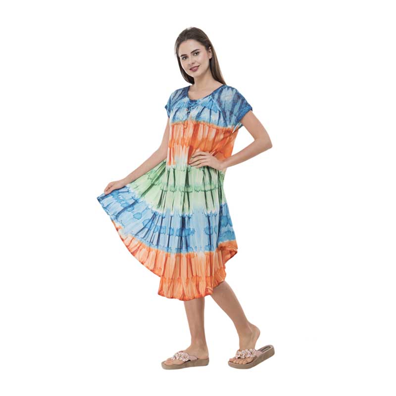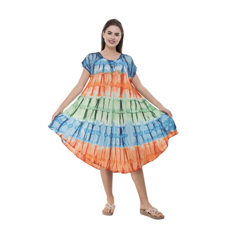 Vibrant Tie Dye Batik Print Rayon Umbrella Dress